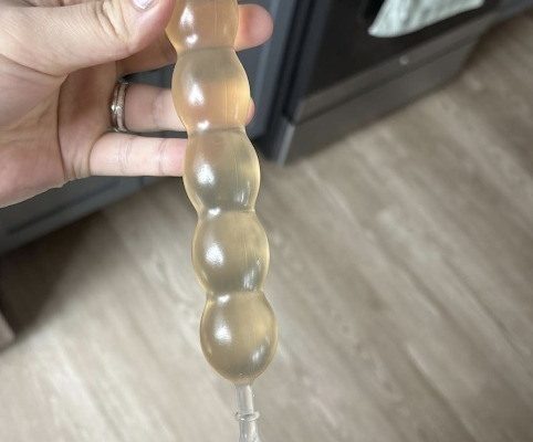 Holding it in my hand, I was struck by its texture. The object was soft yet firm, a little bouncy, and oddly satisfying to touch. Its color was a pale, amber-like translucence, almost glowing in the fluorescent light of the store. It was shaped in a long chain of rounded segments, each one slightly larger than the last. I turned it over and over, trying to imagine what it might taste like, or how it was meant to be consumed.